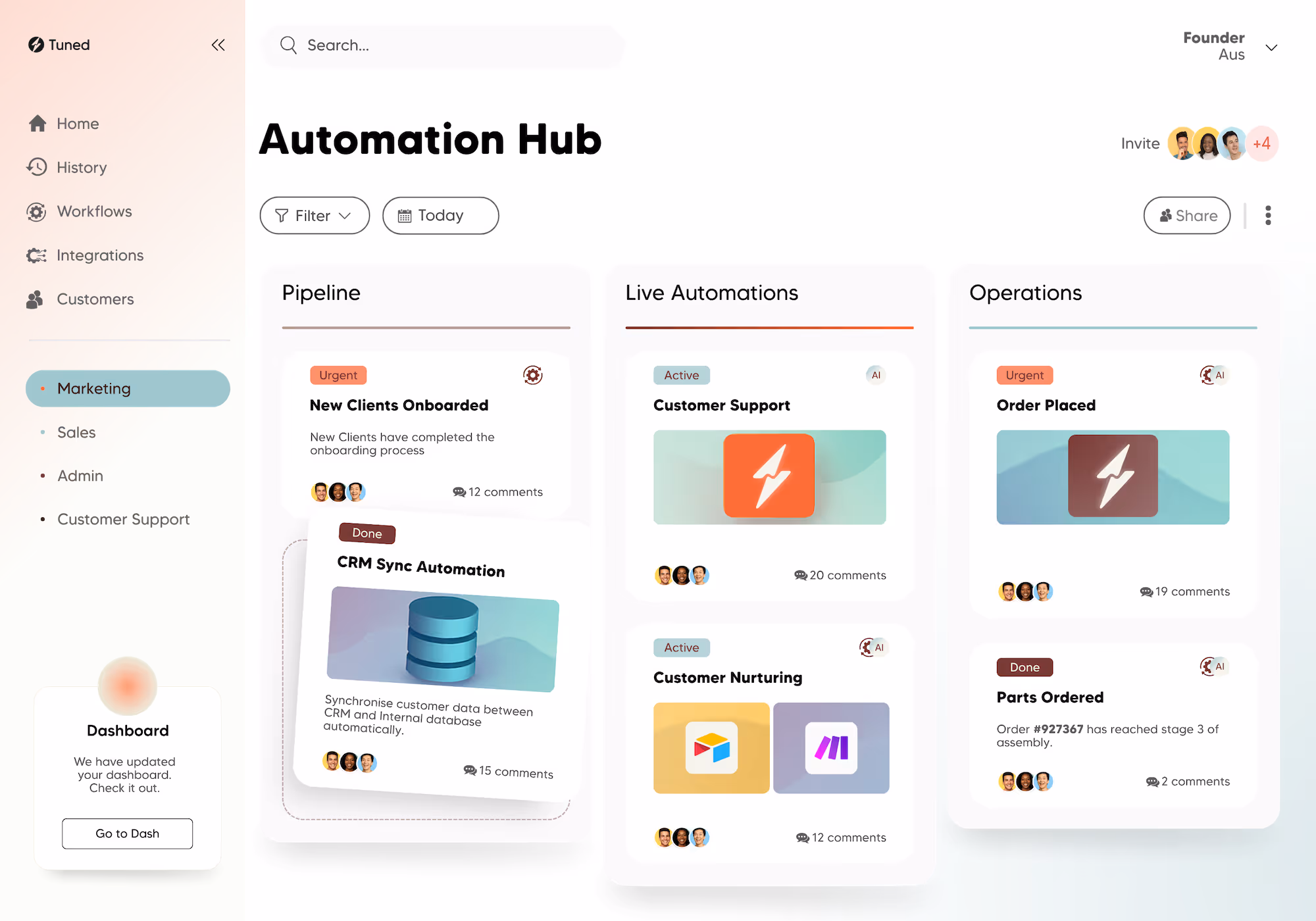 Set permissions, define workflows, and manage access as your team grows. Whether you're solo or scaling fast, keep your automations organised and your data secure